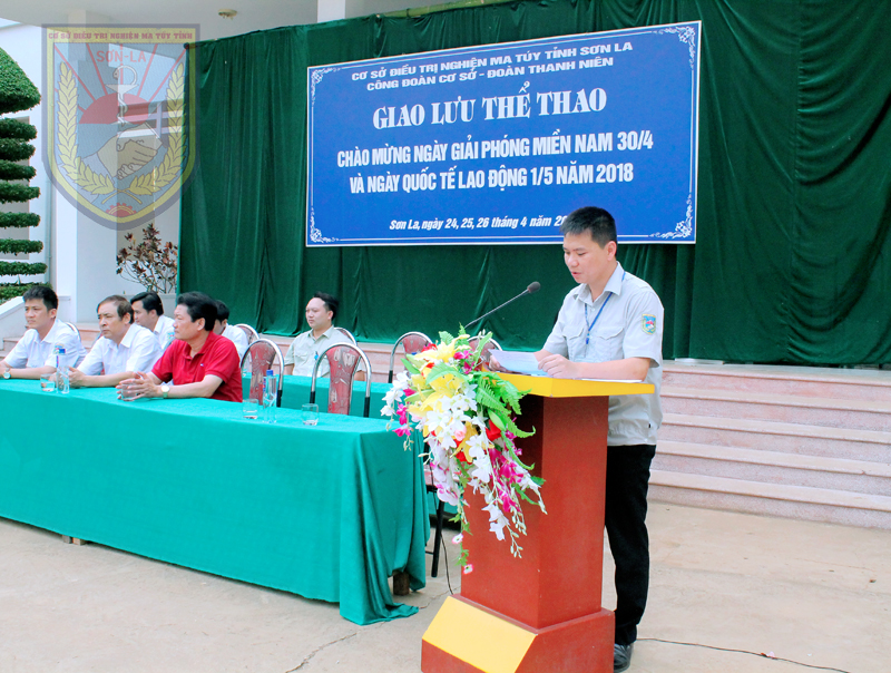 Đồng chí Phạm Tuấn Anh, Chủ tịch Công đoàn, Trưởng phòng Quản lý sau cai nghiện phát biểu khai mạc