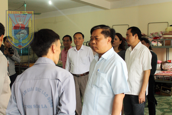 Đồng chí Phạm Văn Thủy thăm hỏi và động viên các học viên tại Trung tâm Giáo dục lao động tỉnh.