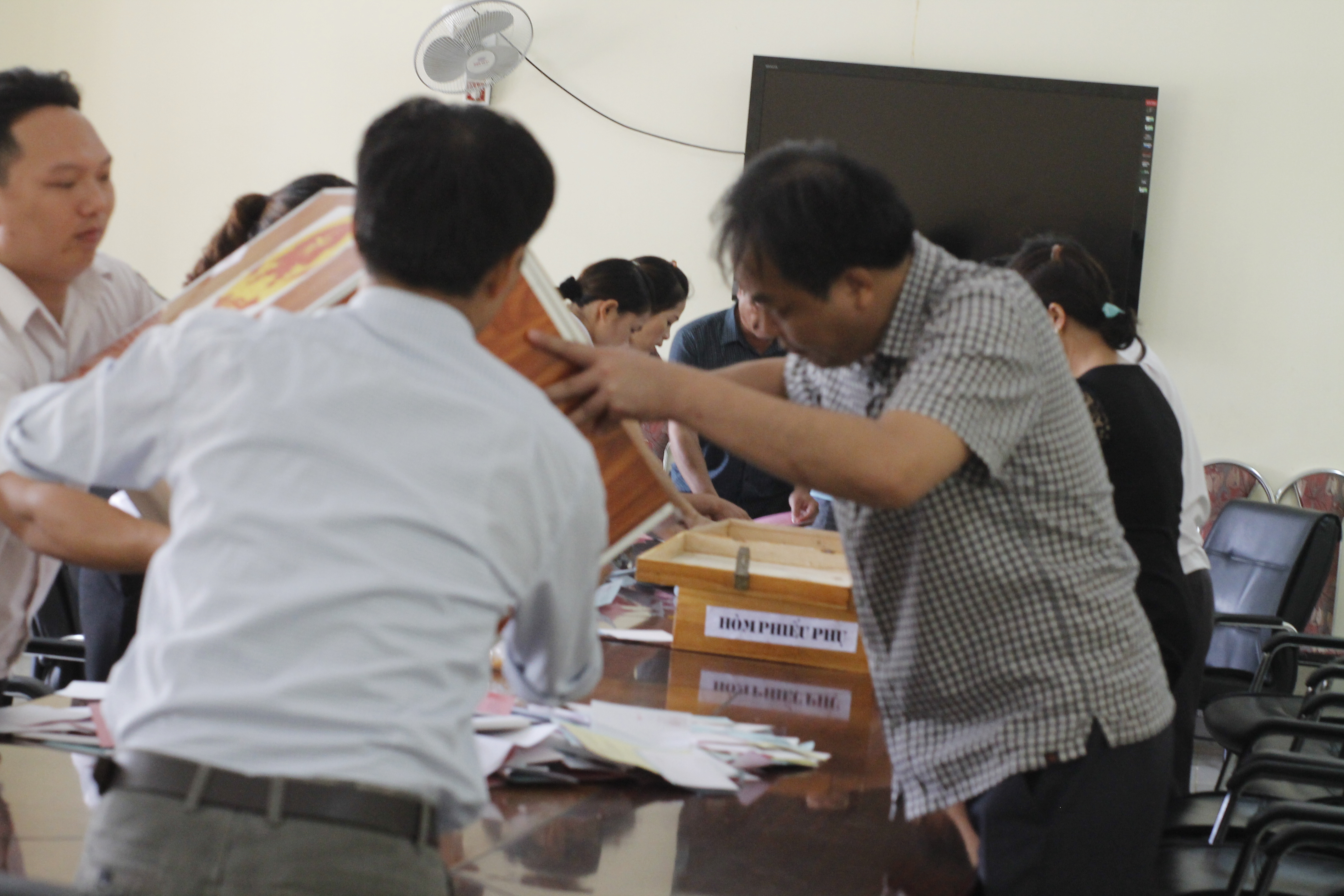 ( Kiểm tra hòm phiếu trước khi tiến hành bỏ phiếu)
