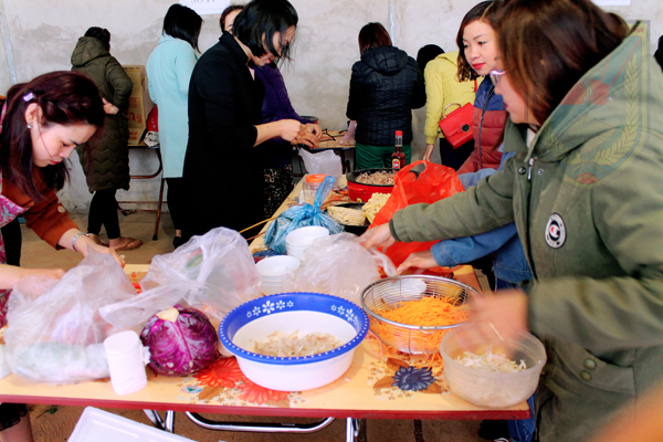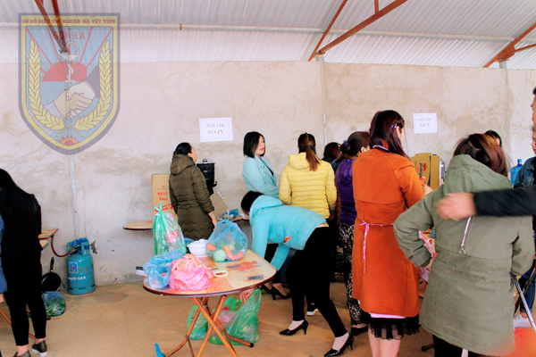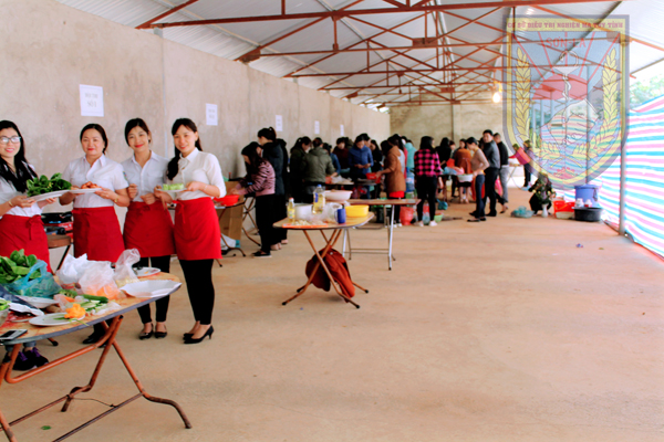 Sau đó tất cả mọi người có mặt đến mâm cơm từng đội để thưởng thức tài nghệ nấu nướng của chị em nữ công trong không khí vui vẻ, đầm ấm.