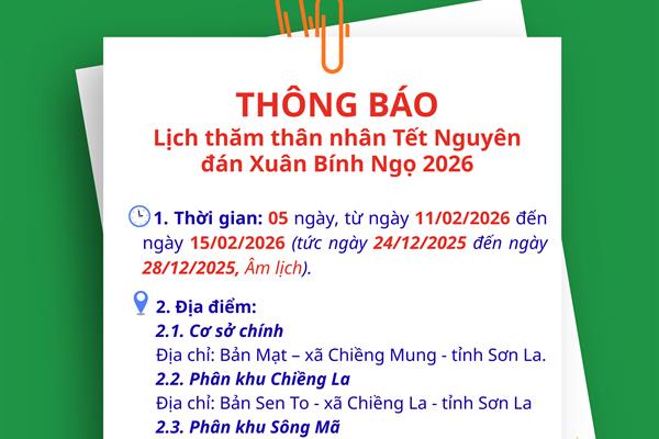 Thông báo Lịch thăm thân Tết Nguyên đán Xuân Bính Ngọ 2026